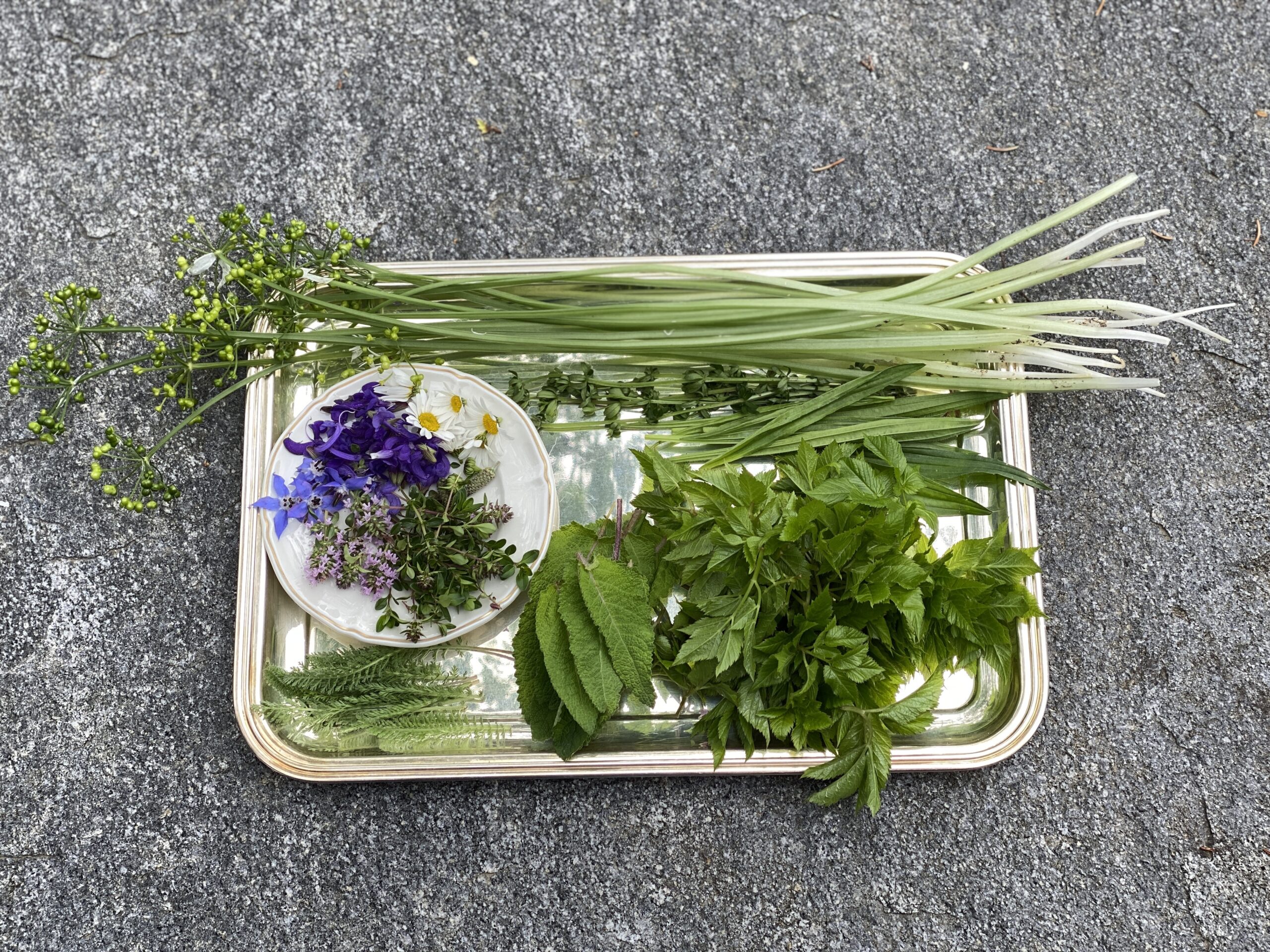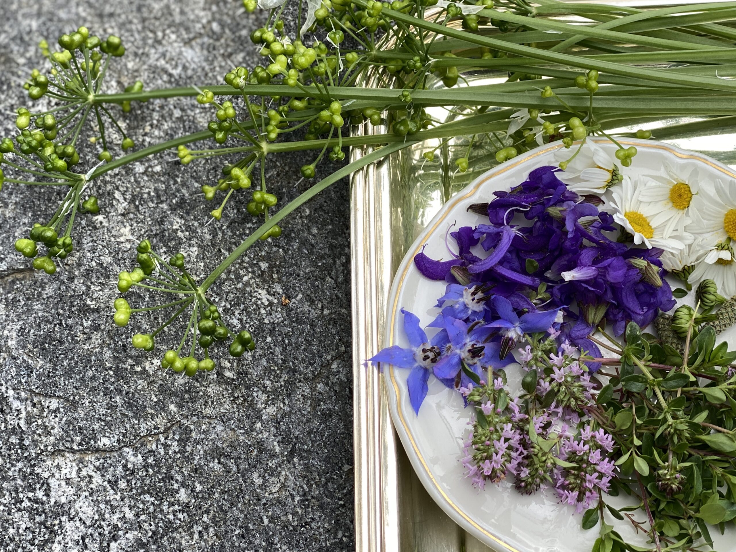 Bärlauchsamen & – stengel, Giersch, Borretsch, Margeriten, Wiesensalbei, Thymian, Schafgarbe, und und und.